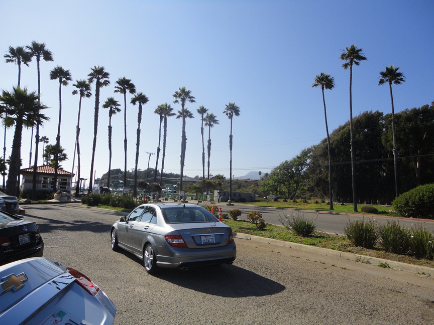 In what would become a familiar scenario for the next two weeks, we got up and hit the road straight away. I drove us up the coast to Santa Barbara for tea and a bagel and a quick check of Facebook on the tourist information centre computer. There seemed to be some classic car event on in Santa Barbara and it had a nice pier with a man fishing in a floating armchair off it (no, seriously), but other than that it seemed quite a sleepy place. Maybe it’s because it was a Sunday.