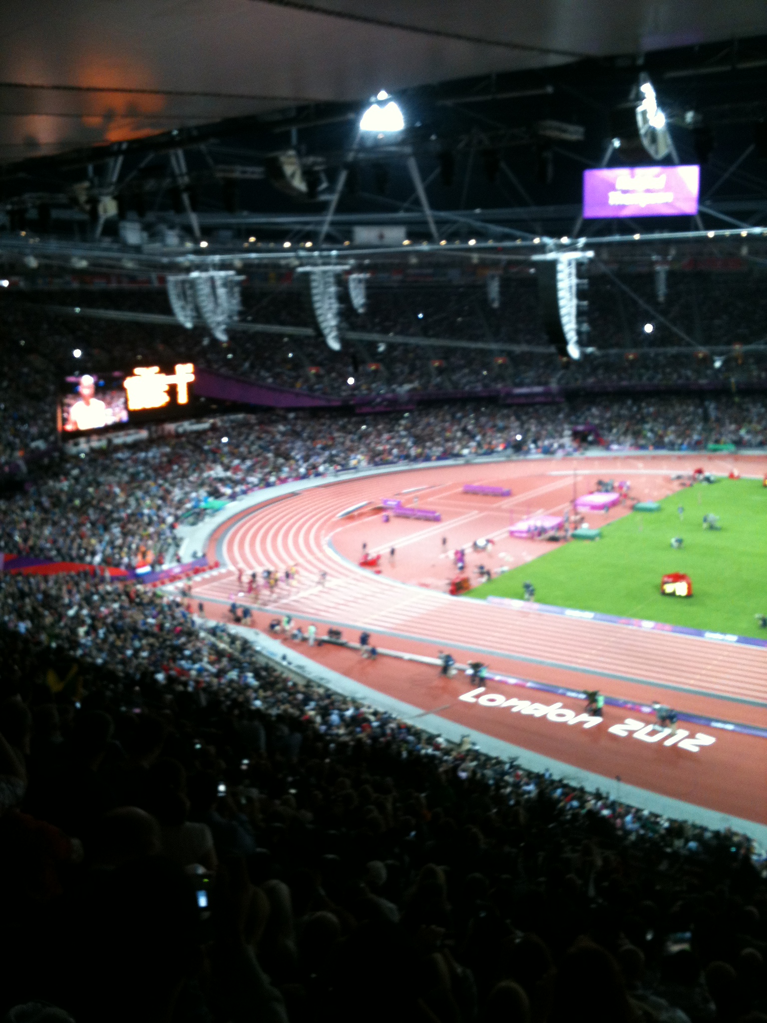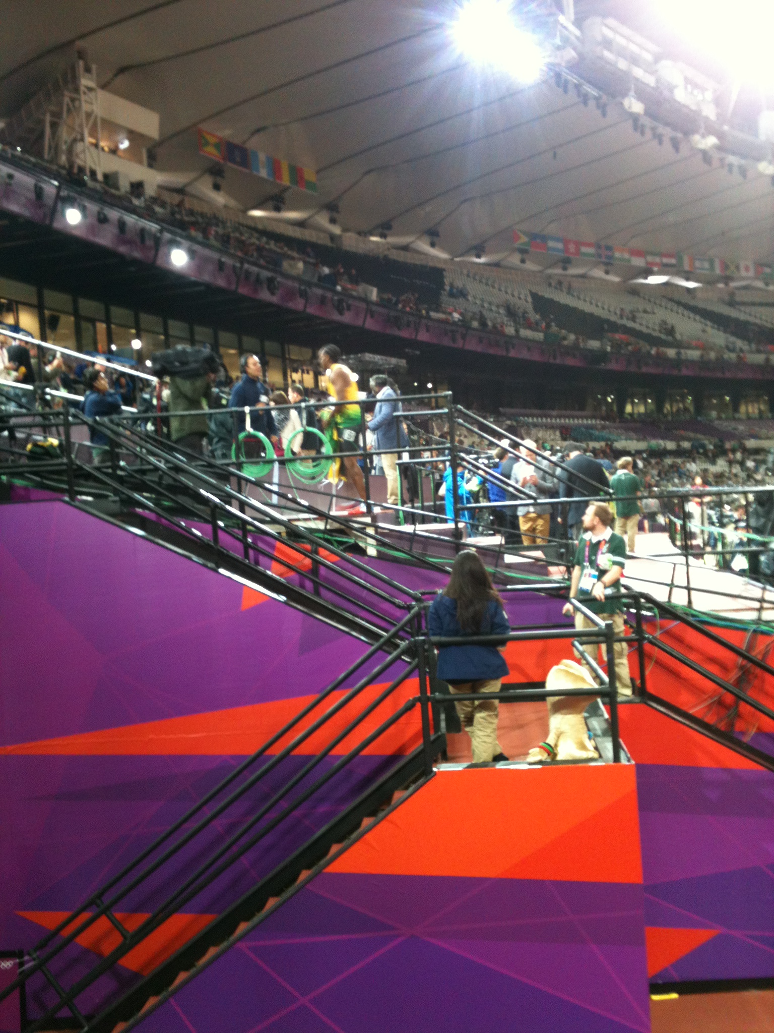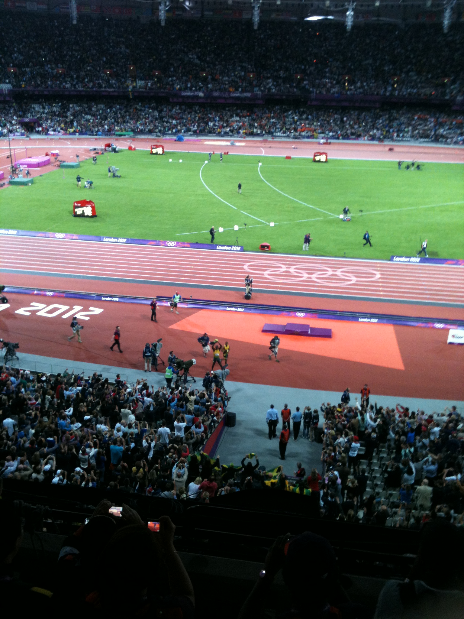On Sunday I managed to borrow a couple of passes to the stadium to get in for the 100m final night of athletics. It was only appropriate that I took a Jamaican colleague of mine – it turns out his wife knows silver medallist Johan Blake’s mum and when he shouted to him, Johan turned around! The photographers around us were delighted! Not for the first time, we had snuck into an area we were not really supposed to, after much running around trying to get close to the medallists and being denied access repeatedly. Earlier, we had struggled to find somewhere to stand (we did no have seats, only accreditation) and security were not being helpful. I managed to sneak us into the media area before we were told broadcasters were being ushered to the top of the stadium as they were clearing that area. We followed the broadcasters’ herd, knowing one of two things would happen. Either we would be kicked out or we would have the greatest seats in the house, right in front of the 100m with the best view of the whole stadium. No one disturbed us all night and we witnessed sporting history on a truly “I was there” occasion.