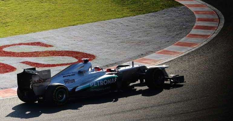 Two laps later the race restarted and whilst Schumacher, Webber and Button battled for second, Vettel began to pull away again. Webber made a mistake at the chicane on lap 64 and dropped back to fourth. Next lap, Button nailed Schumacher and set about after leader Vettel, who was three seconds up the road. Vettel had led every lap of the race so far and was a second ahead on the final lap. He made an error (his first of the season so far) and half spun at turn six after touching the white line. It was enough for Jenson to slide through and take a famous victory.