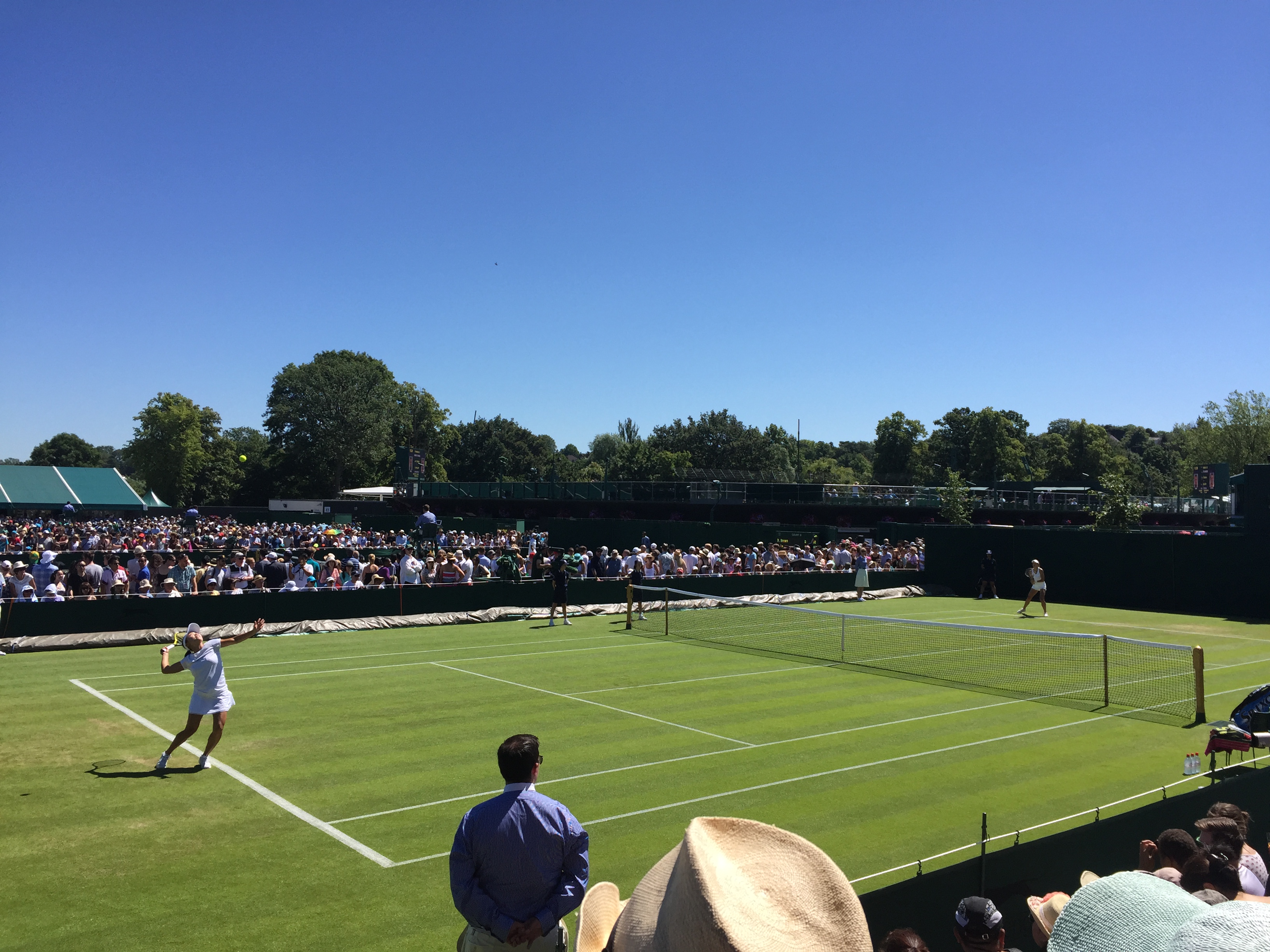 The day itself was magnificent – blazing hot sunshine, several Brits in action, champagne on Henman Hill, great matches on Court 3 and all rounded off by being in the audience for Claire Balding’s show!